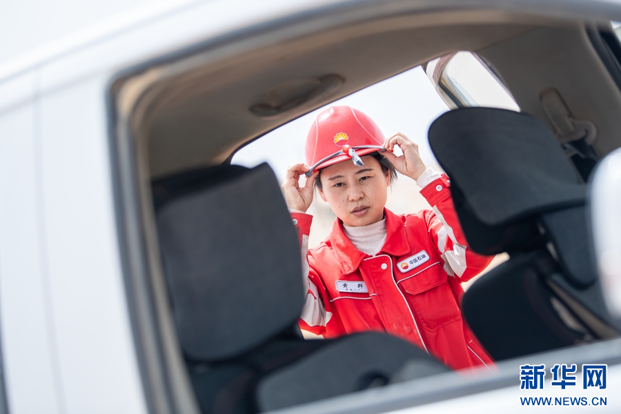 黄群进行油井巡检前的准备工作。