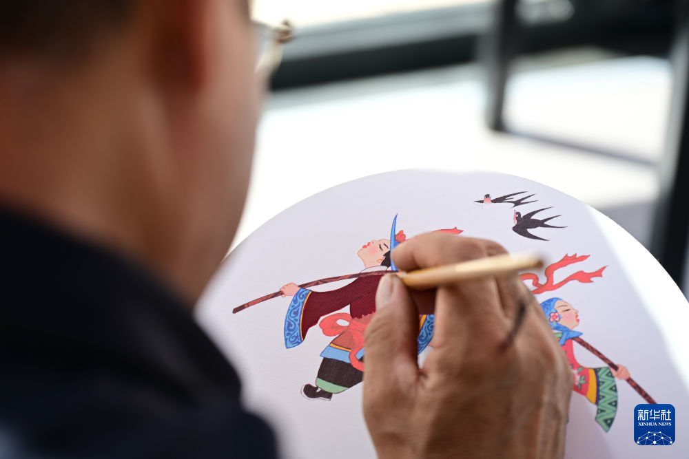 5月19日,在青海文化旅游节文旅和非遗产品体验区,一名大通农民画非遗传承人创作农民画。新华社记者 齐芷玥 摄