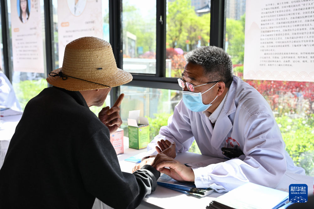 5月19日,医护人员在青海文化旅游节中(藏)医体验馆为市民义诊。新华社记者 齐芷玥 摄