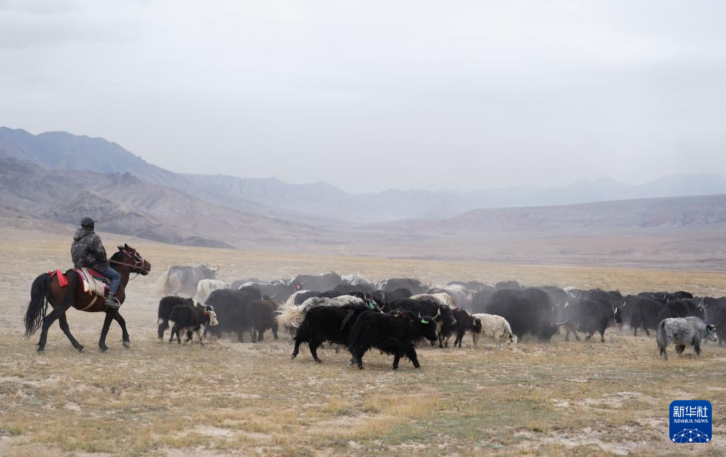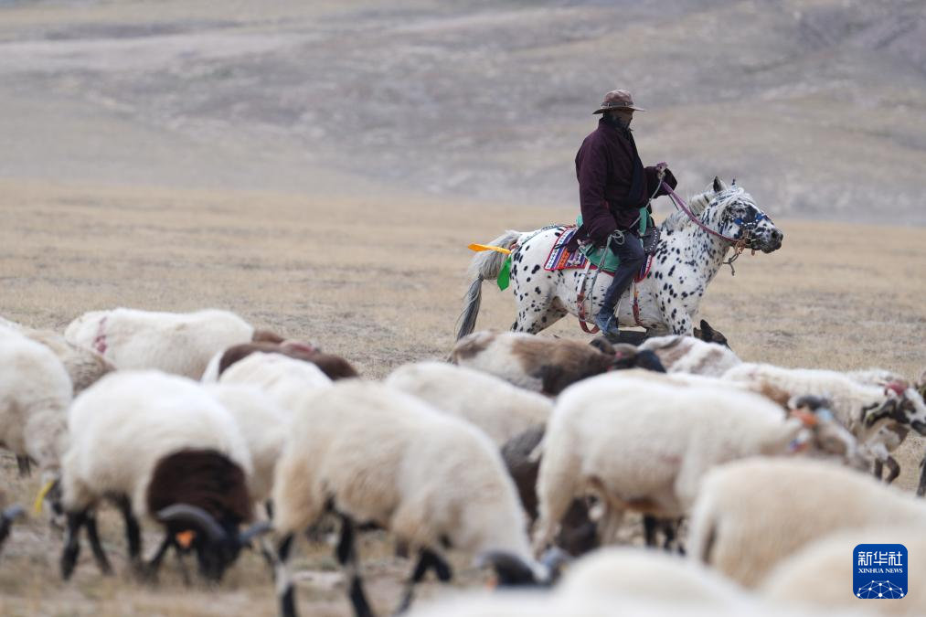 近日,位于柴达木盆地东部的青海省海西蒙古族藏族自治州都兰县牧民开始秋冬季转场。在都兰县热水乡,牧民们带着全部家当,将在三四天内驱赶牛羊转场数百公里,从夏季草场赶往冬季草场。