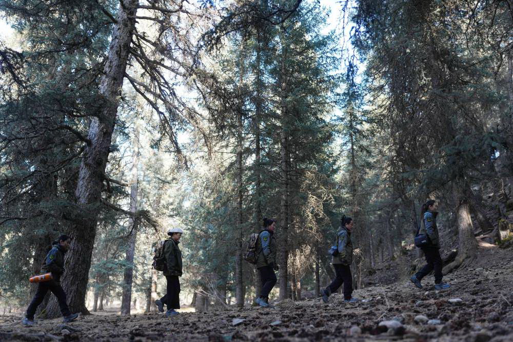 初春时节,祁连山深处林海茫茫,一支女子管护队顶着料峭寒风,跋山涉水开展巡查。 祁连山国家公园(候选区)青海片区青阳沟管护站位于青海省海北藏族自治州祁连县阿柔乡,平均海拔超过3100米。目前,管护站内有54名女子生态管护员,她们常年坚守在祁连山深处,承担着辖区内林木生长监测、病虫害防治、火灾隐患排查、野生动物保护救助等任务,用心用情守护着脚下的土地。 祁连山是我国西部重要生态安全屏障,是雪豹、白唇鹿、黑颈鹤等珍稀野生动物的重要栖息地。